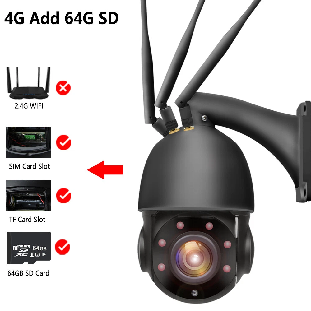 5MP HD 4G Wireless WIFI IP Camera PTZ CCTV Smart Outdoor Home Security IR Camera